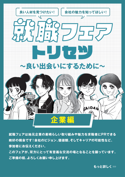 「就職フェア トリセツ~企業編~(PDF 約7MB)」をぜひご覧下さい!